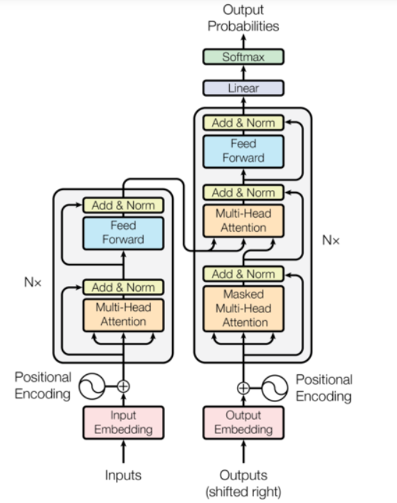 经典的transformer架构如下图所示,分为编码器和解码器。构建模型的过程中,先构建通用的模块,如位置编码、多头自注意力、前馈神经网络层等,然后组建编码器和解码器,最后统一到一个模型中。
