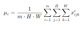 BN要做的就是在每个通道上例如C1(灰色层)上将所有批量中的样本H* W个值拿出来,计算均值和方差:
