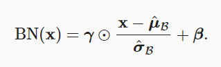 从形式上来说,小批量中的一个样本x输入到批量规范化BN后,根据以下表达式对x进行转换:
